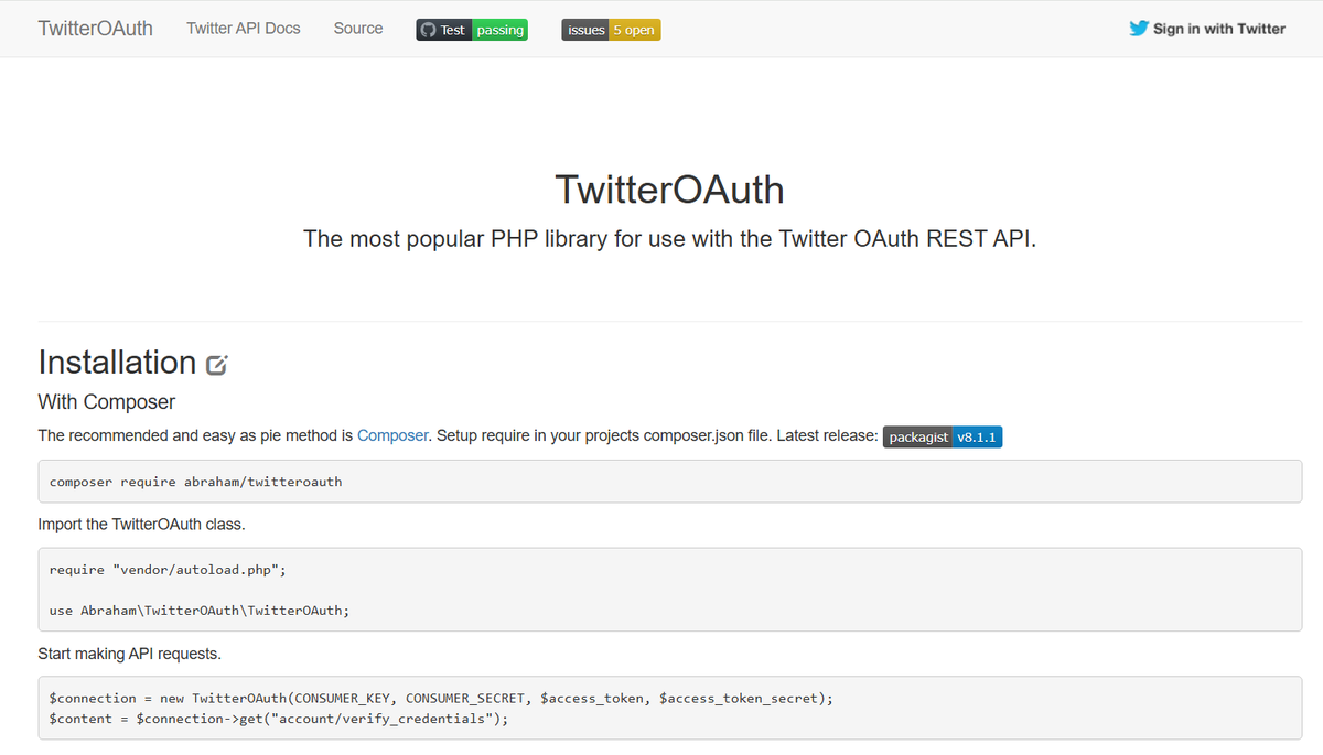 La bibliothèque PHP la plus populaire à utiliser avec l'API REST Twitter OAuth